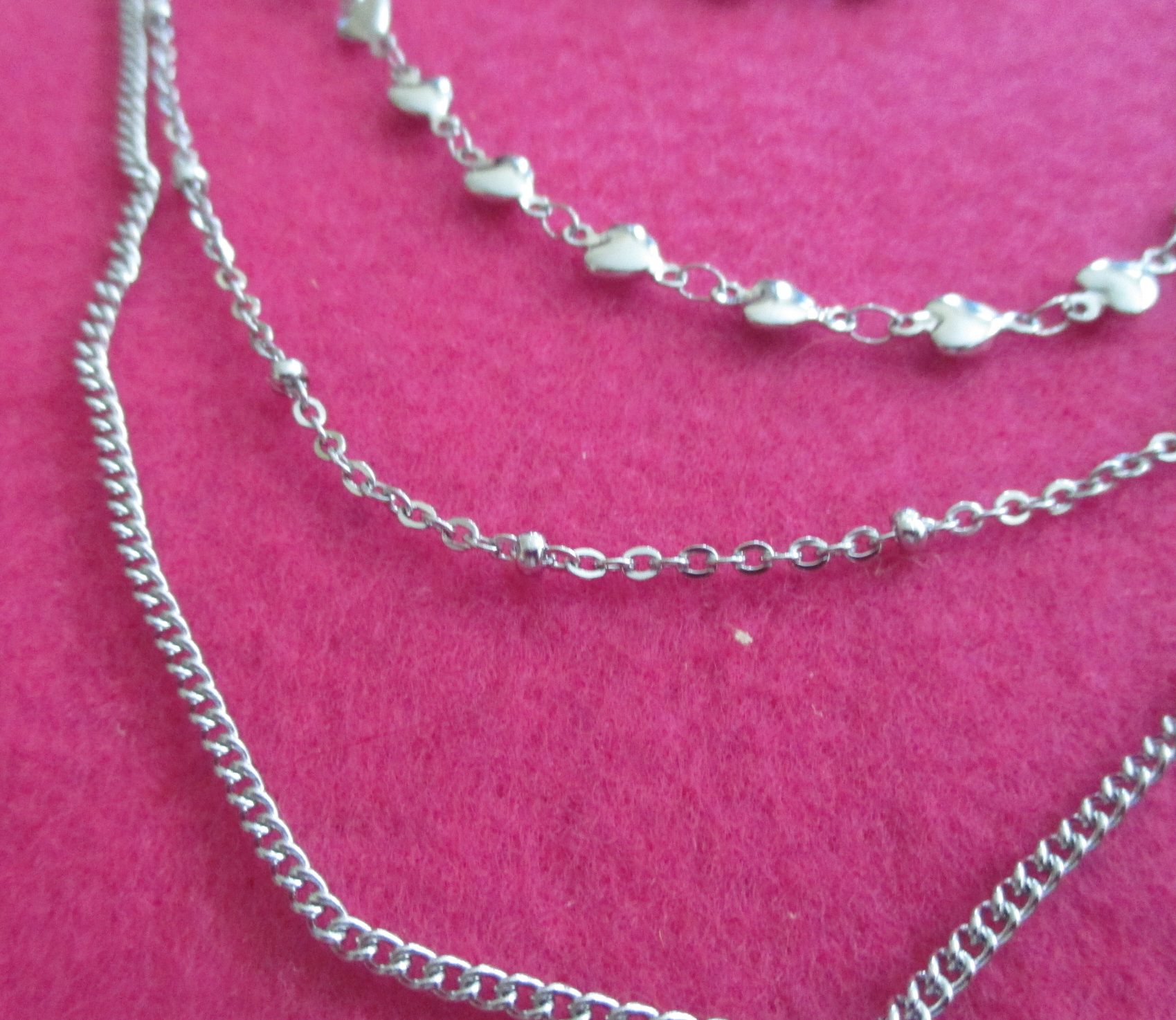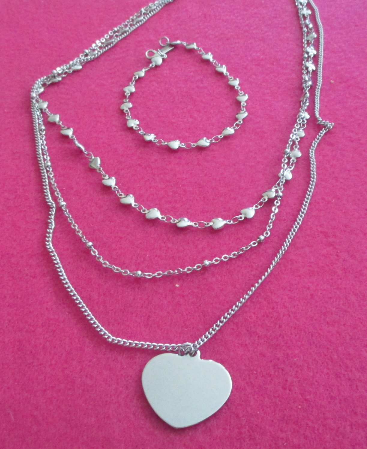Stainless steel set 3 layer heart link chain 50cm, 55cm & 60 cm with heart pendant & 19cm heart link chain bracelet