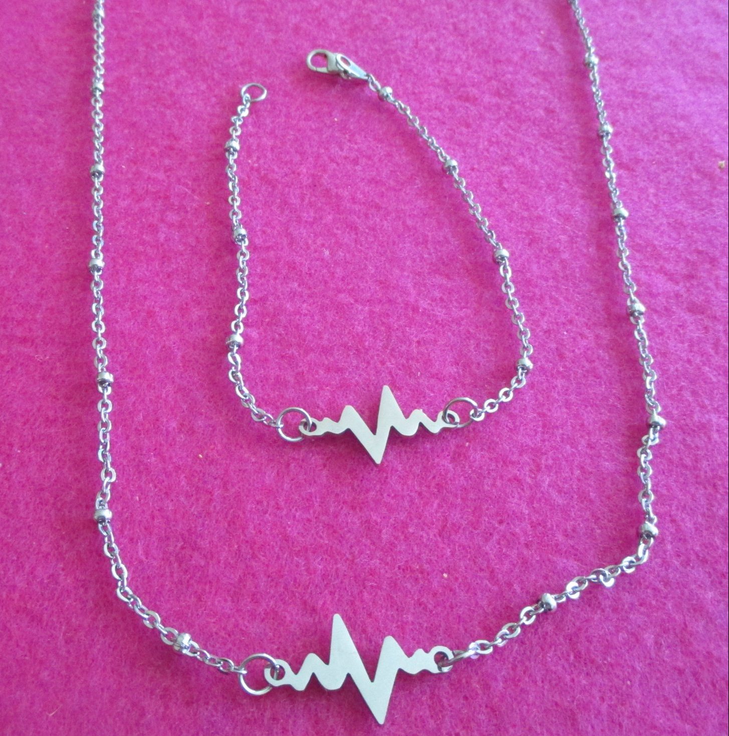 Stainless steel set with beat pendant 55cm stainless steel chain & 19 cm bracelet